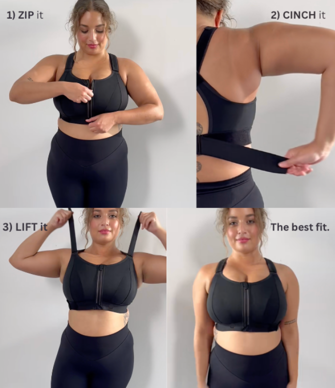 Three simple steps to your perfect fit. Zip for easy closure, cinch for a customized hold, and lift for ultimate support. That's it.